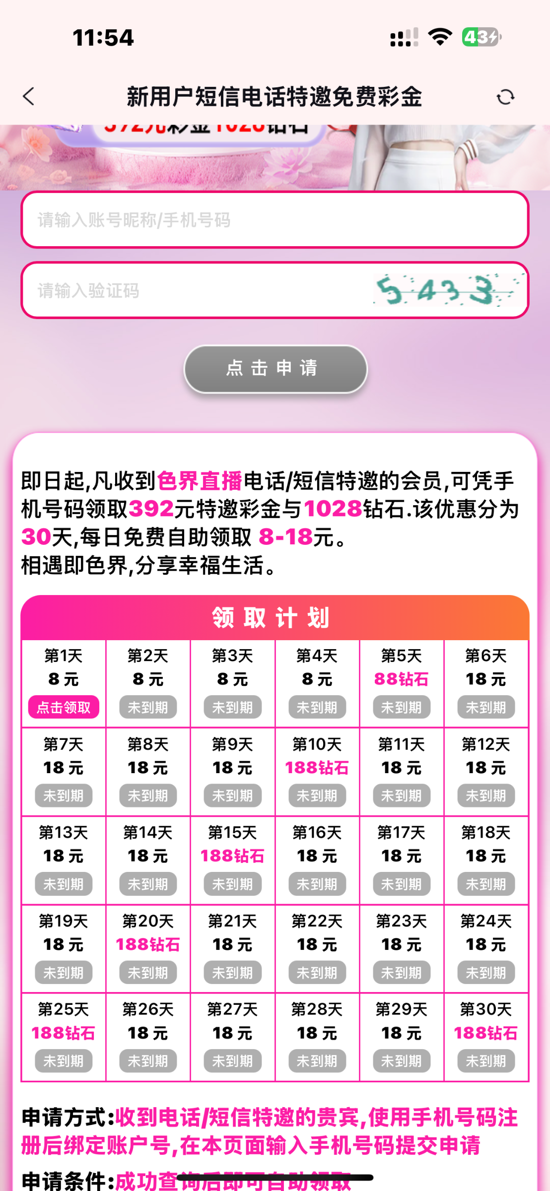 注册活动里自助秒8,送三天